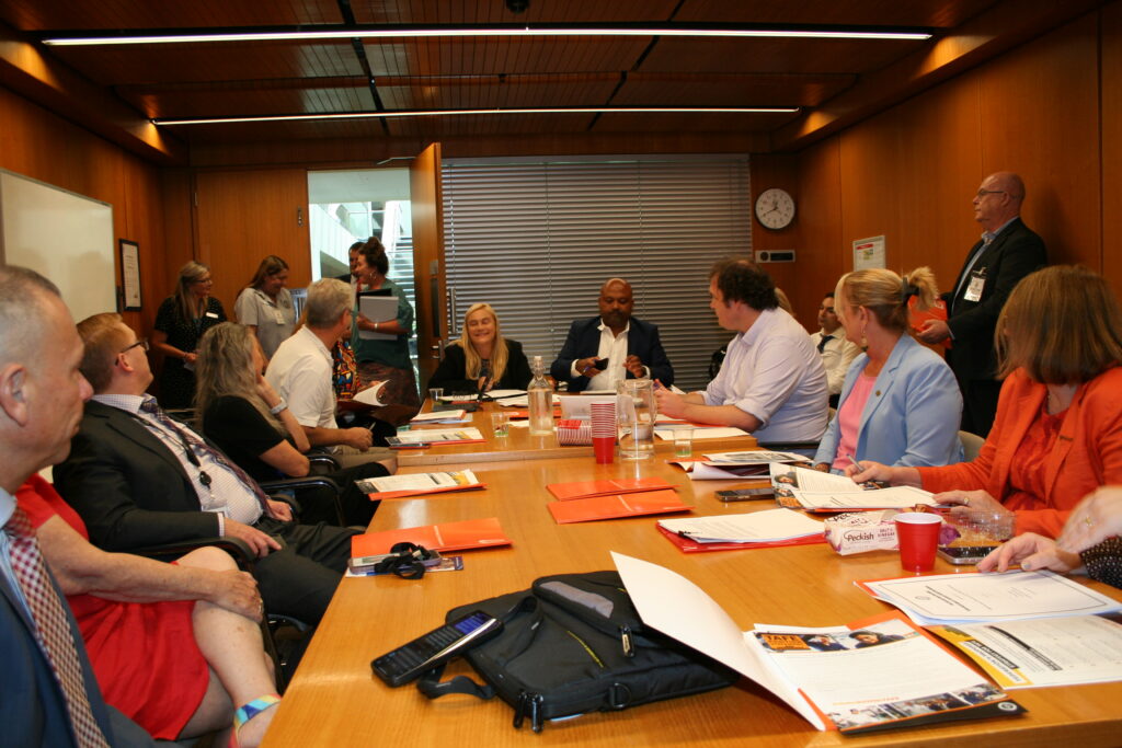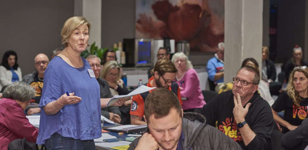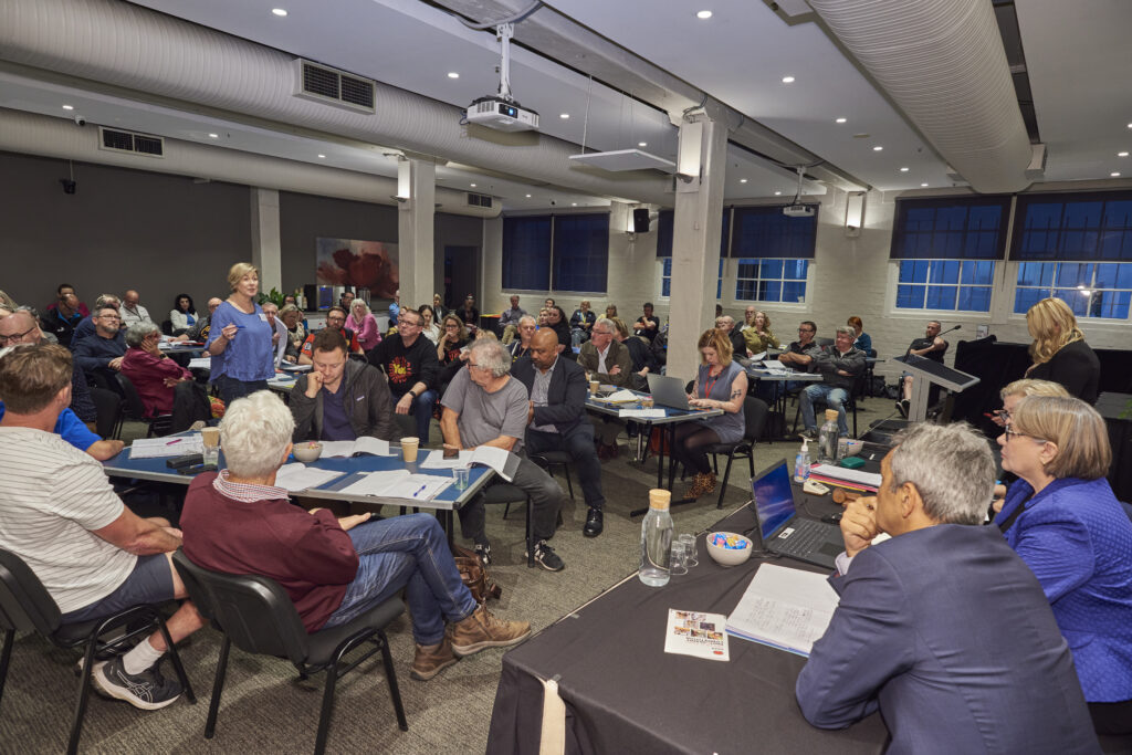 Amber Flohm, Federation Deputy President, updates members on the Federation campaign to Rebuild TAFE.