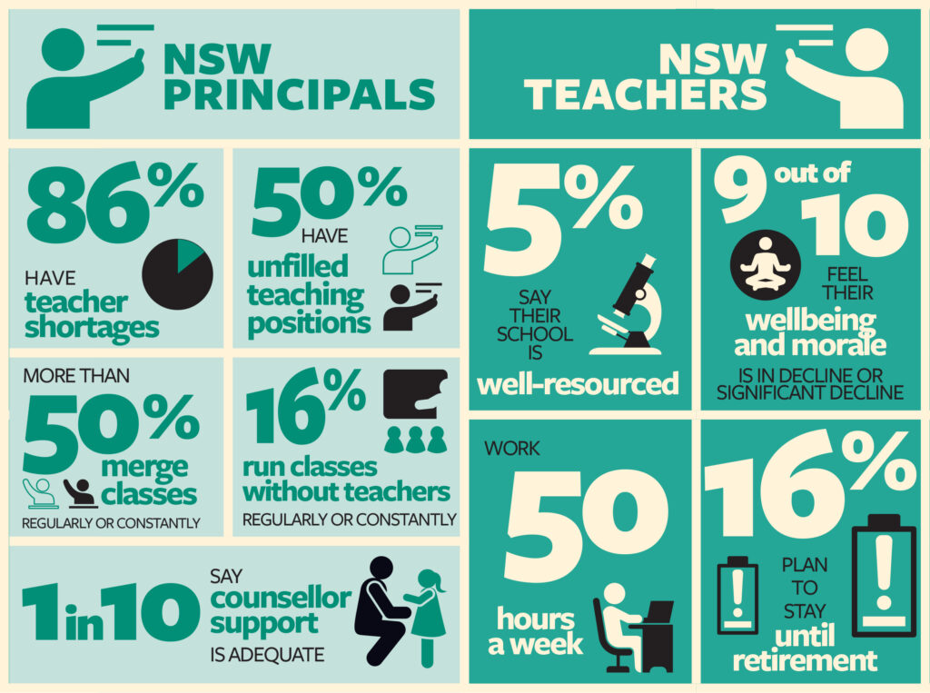 “While the number of principals reporting teacher shortages has fallen from the unprecedented level we saw under the NSW Coalition Government, they remain an acute problem,” Ms Haythorpe said.